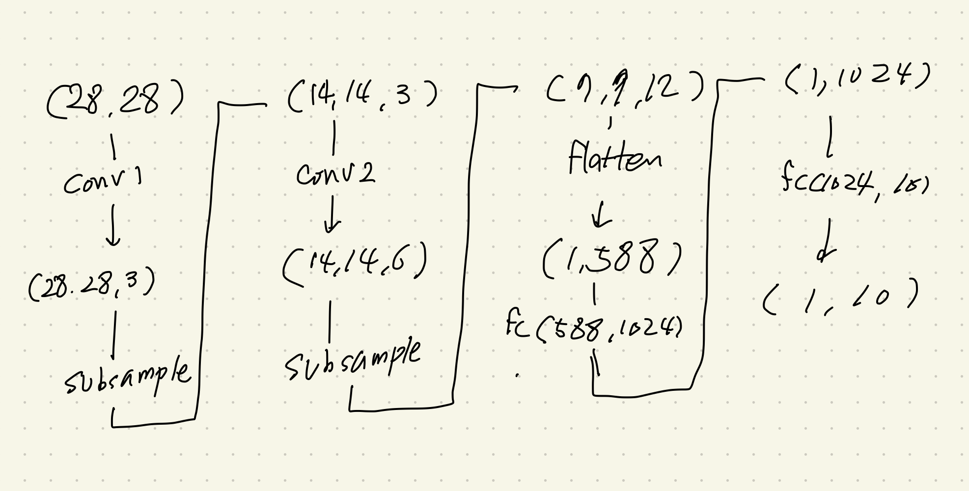 conv1, conv2, subsample, fc1, fc2 를 각각 구현하고, forward함수까지 작성해보도록 하겠습니다.